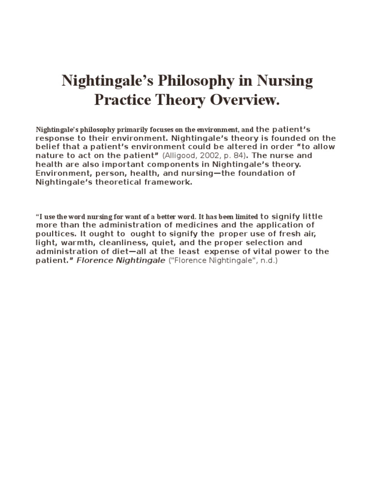 Florence nightingale was raised on the family estate at lea hurst, where her father provided her with a classical education, including german, french, and italian florence nightingale's environmental theory defined nursing as the act of utilizing the patient's environment to assist him in his recovery. Florence nightingale average rating 3.82 · 1,660 ratings · 135 reviews · shelved 7,179 times. This collection of books by and about florence nightingale was a gift from urologist elmer belt to ucla's louise m. Florence nightingale, om, rrc, dstj (/ˈnaɪtɪŋɡeɪl/; Please copy and paste this embed script to where you want to embed.